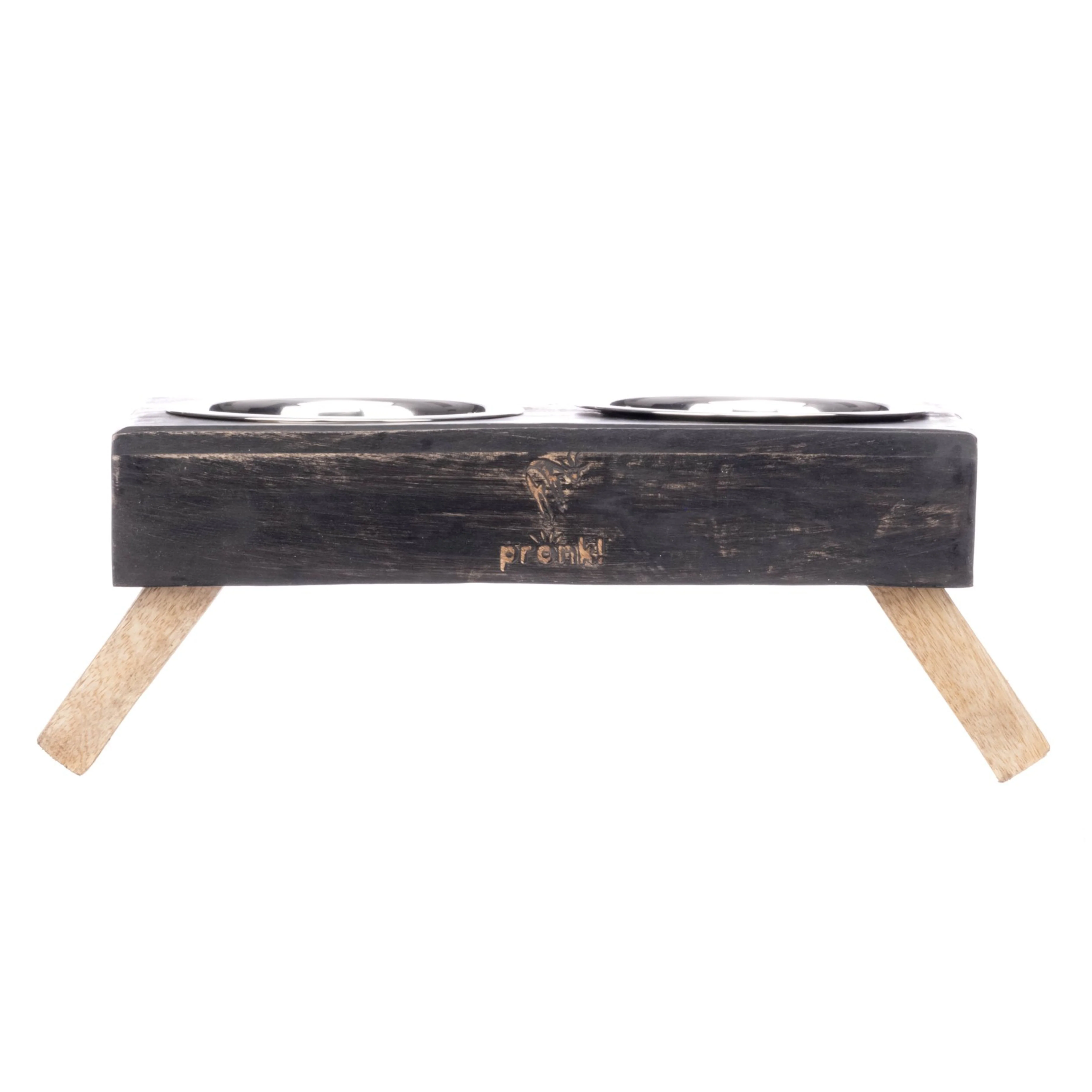 Pronk! Grey Small 12.5 x 5.5 Inch Wood Adjustable Water & Pet Food Feeder—